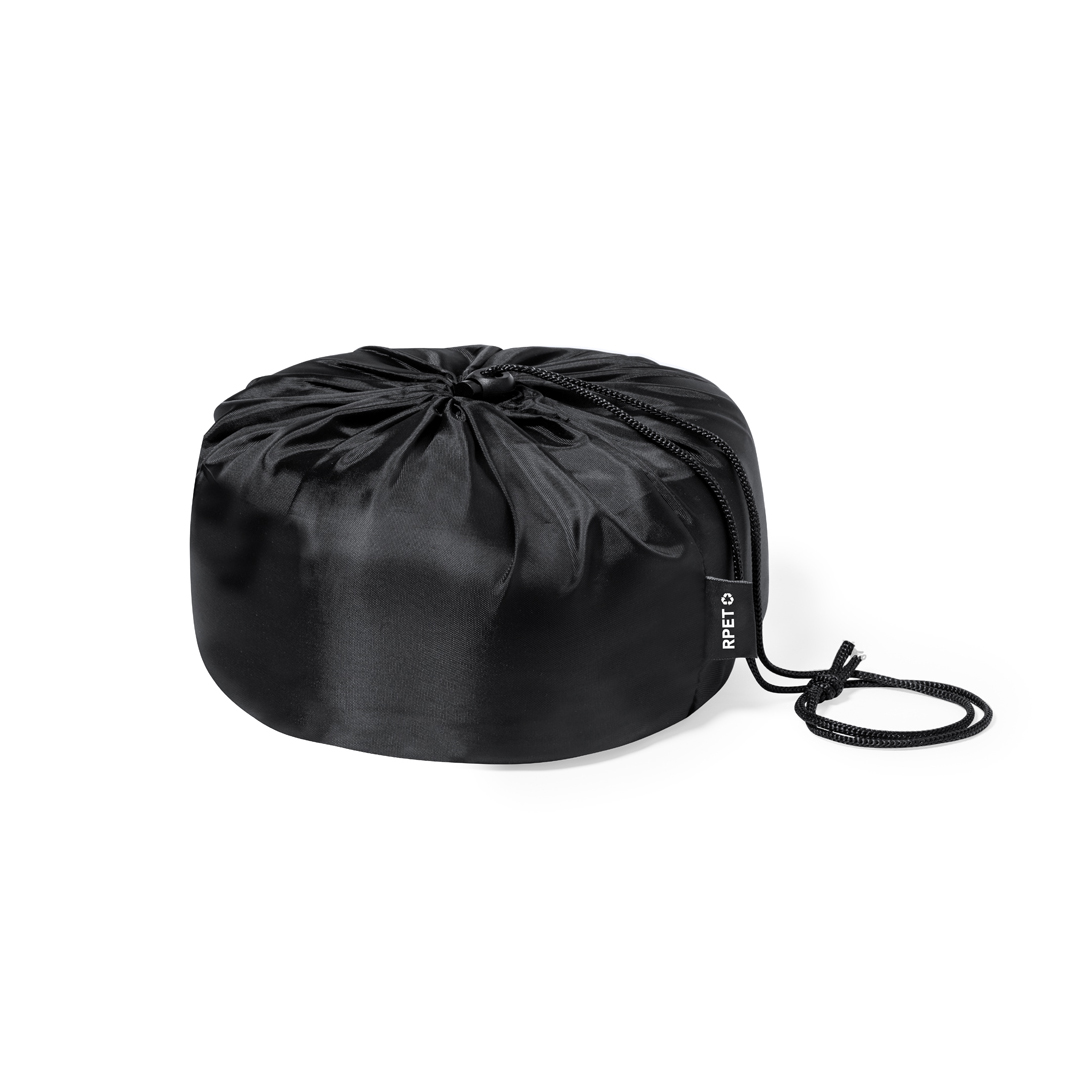 Cómoda almohadilla portátil acolchada para cuello. Máxima experiencia de confort para cualquier viaje gracias a la almohadilla de suave tacto y los cierres de cordón para un correcto y cómodo ajuste. Con funda confeccionada en RPET para protegerla en el transporte y etiqueta distintiva. El material RPET se elabora a partir de plástico reciclado, para así fomentar la reutilización de residuos plásticos y ayudar a la sostenibilidad del planeta. Funda Poliéster RPET