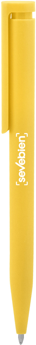 Plástico. Cuerpo de diferentes colores. Bolígrafo retráctil. Clip plástico del mismo color del cuerpo. Tinta negra. Sistema de botón push para destapar. Amplia área de impresión.