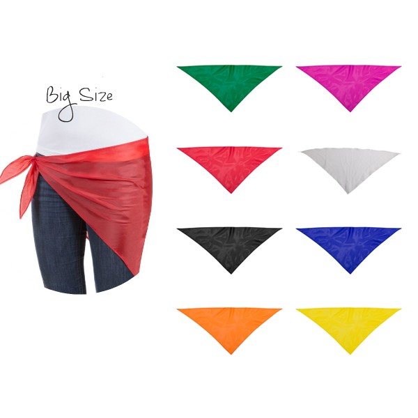 Pañoleta fajín de tamaño extra grande en suave poliéster y variada gama de vivos colores. Con pespuntes de refuerzo en laterales.