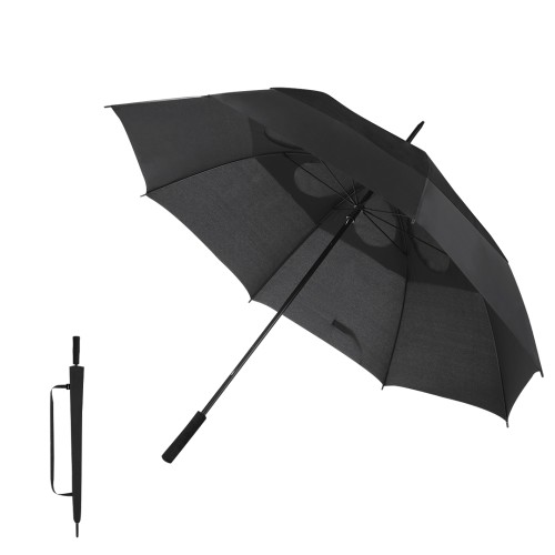 Paraguas de 130cm de diámetro, fabricado en material poliéster RPET 210T. Con apertura/ciere manual y varillas de fibra de vidrio. Mango en EVA . Se presenta en una funda en mismo color con correa para llevar comodamente. Incluye distintiva etiqueta RPET.