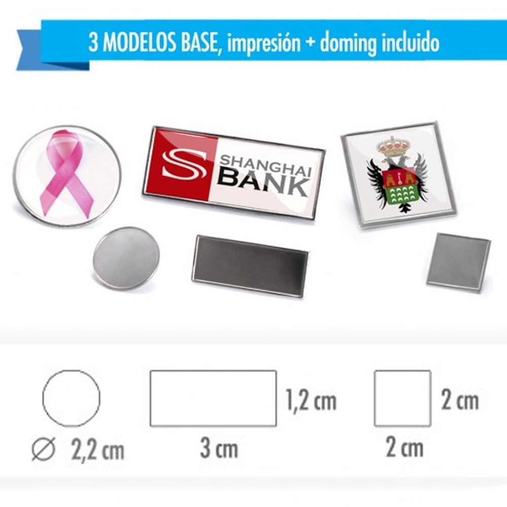 Pin metálico 100% personalizable especialmente diseñado para marcaje a todo color. Impresión a todo color incluida y doming incluido. Para pedidos a partir de 300 unidades. Cliché no incluido.