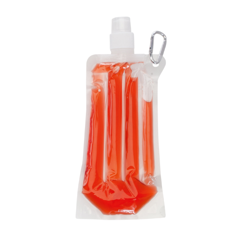 Bidón enfriador de 400ml de capacidad con cuerpo acabado en PET transparente y líquido refrigerante en vivos colores. Con tapón de seguridad a rosca y mosquetón metálico de transporte. 400 ml