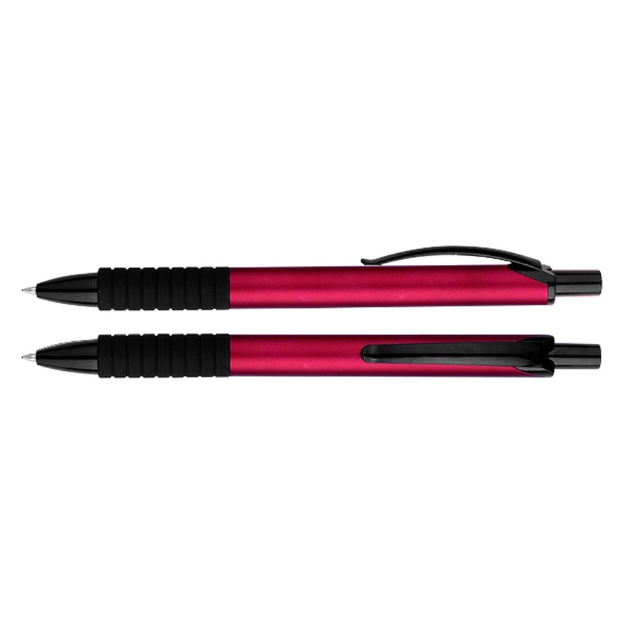 Bolígrafo "Vulcano" con cuerpo de color metalizado opaco y terminales negros. Escritura azul.