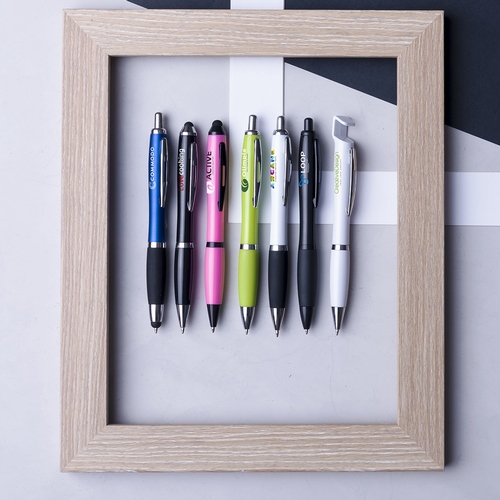 Bolígrafo puntero de colorido diseño, de apertura giratoria y cuerpo en vivos colores brillantes a juego con la empuñadura. Con detalles cromados y clip metálico. Cartucho jumbo y tinta azul.