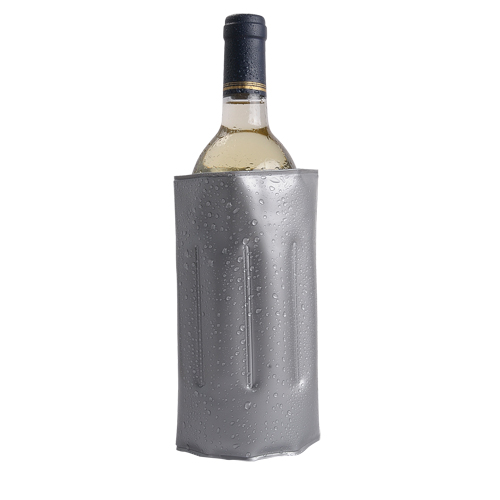 Enfriador para botellas fabricado en resistente PVC, con cierre ajustable de velcro. Líquido refrigerante interior y acabado termo sellado. Disponible en variada gama de colores.